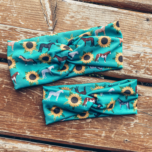 Teal Sunflowers & Horses Headband (Toddler ONLY)